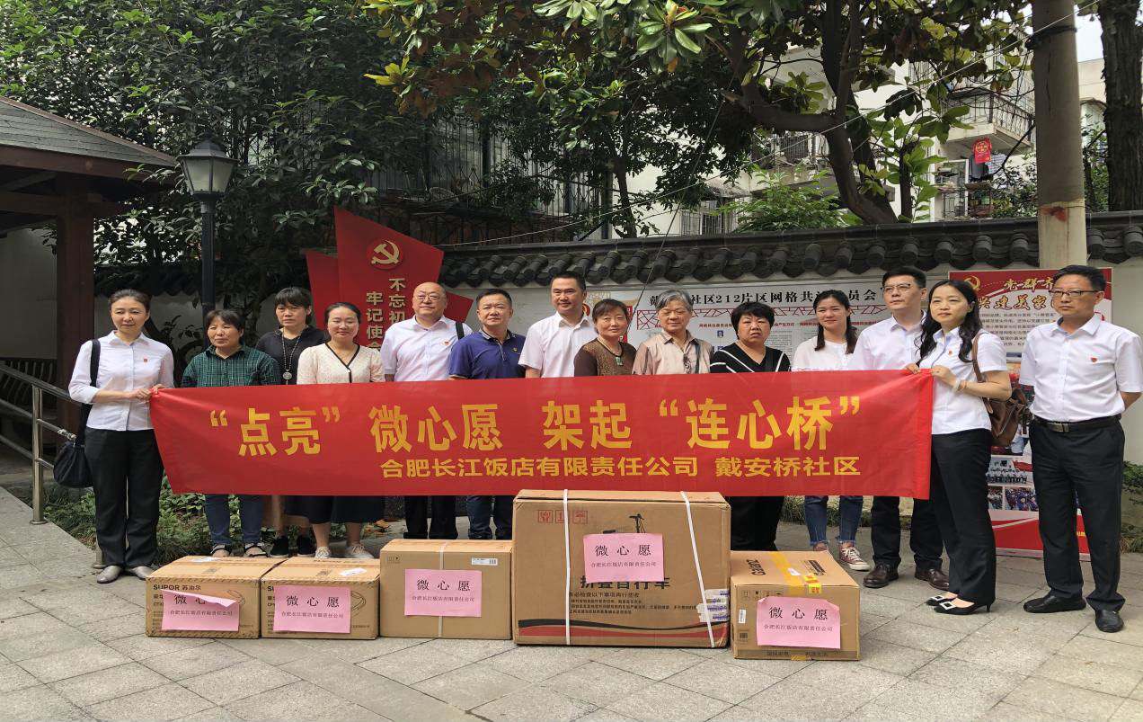 為貫徹落實(shí)黨的十九大精神,積極探索黨建引領(lǐng)下的多元治理新機(jī)制,遵循資源共享、優(yōu)勢(shì)互補(bǔ),形成合力共建結(jié)對(duì)的要求,以項(xiàng)目為依托,搭建黨建聯(lián)建橋梁,5月28日,長(zhǎng)江飯店黨支部在黨支部書(shū)記沈群帶領(lǐng)下,應(yīng)邀參加戴安橋社區(qū)結(jié)對(duì)共建協(xié)議簽訂儀式和開(kāi)展“點(diǎn)亮微心愿”活動(dòng)。