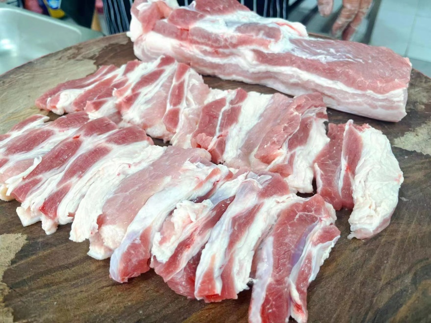 長江飯店秉承“興農(nóng)、助農(nóng)”宗旨,將助農(nóng)產(chǎn)業(yè)和公司自身轉(zhuǎn)型發(fā)展緊密結(jié)合,發(fā)揮優(yōu)勢,為拓寬公司經(jīng)營渠道,長江飯店通過充分調(diào)研,先行推出自制家鄉(xiāng)米粉肉、紅燒大仔圓這兩道廣泛流行于安徽等地的傳統(tǒng)名菜。家鄉(xiāng)米粉肉以主料帶皮五花肉和秘制調(diào)味料制作而成,糯而清香,酥而爽口,肥而不膩,入口即化。紅燒大仔圓采用有肥有瘦的農(nóng)家土豬肉配上荸薺等材料,做成丸子,先炸后煮,出鍋后香味瞬間撲鼻而來,即使透著口罩,也能感受到濃濃的醇肉香。
